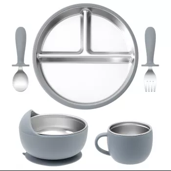 5PCS Stainless Steel Baby Feeding Set with BPA-Free Silicone Bowl & Utensils