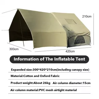 68 SqFt Inflatable Camping Tent with Canopy – 4 Season Waterproof Glamping Tent for 6