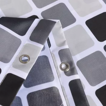 Black Geometric Mosaic Waterproof Shower Curtain with Hooks
