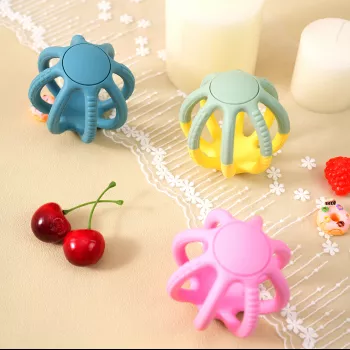 Soft Silicone Baby Teether Ball – Hollow Design, Safe & Squeezable